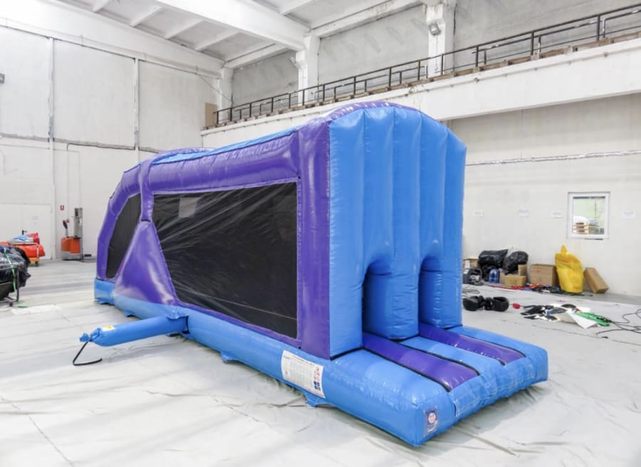 This fully enclosed bouncing obstacle course is a great fun activity with eye catching artwork, Bollards, Pillars , climbing walls and a Slide with an 8ft platform inside this Obstacle course offers hours of entertainment along with high level of safety with its enclosed sides.