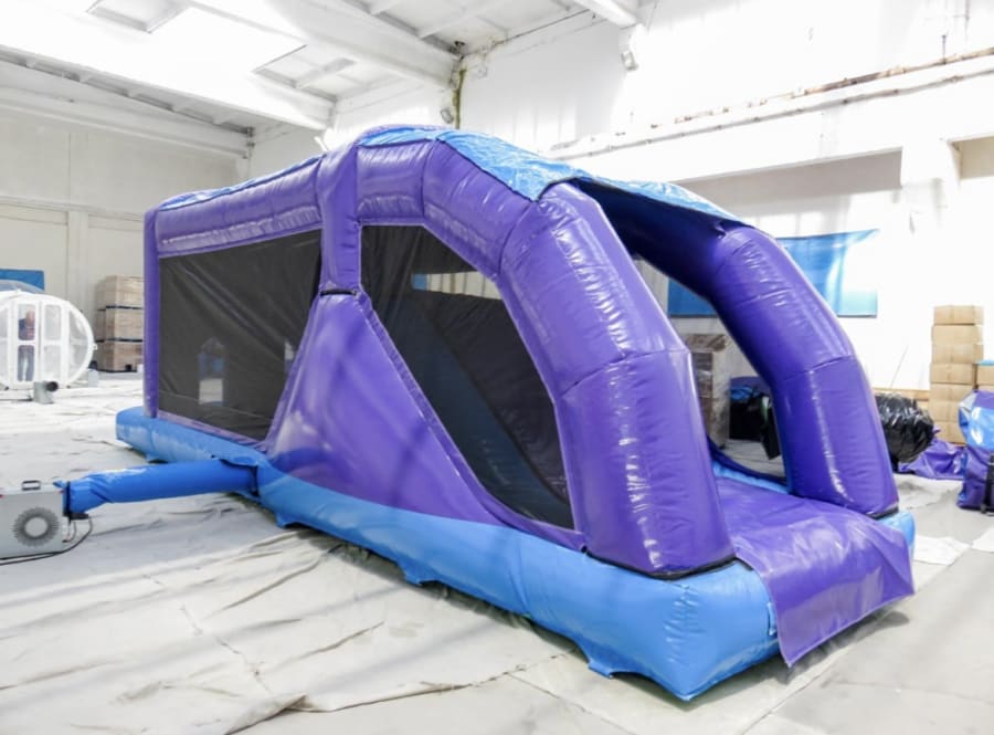 The AO0005PA 1 Part Obstacle Course Party from Airquee is a fabulous obstacle course made in one piece with one blower. It is a great attraction giving more than just a bouncy area. It has 3 obstacles inside with both Biff Bashes and a T-Bar. The slide has a decent height and at almost 30ft long it is a market leading product in terms of value for money and quality.