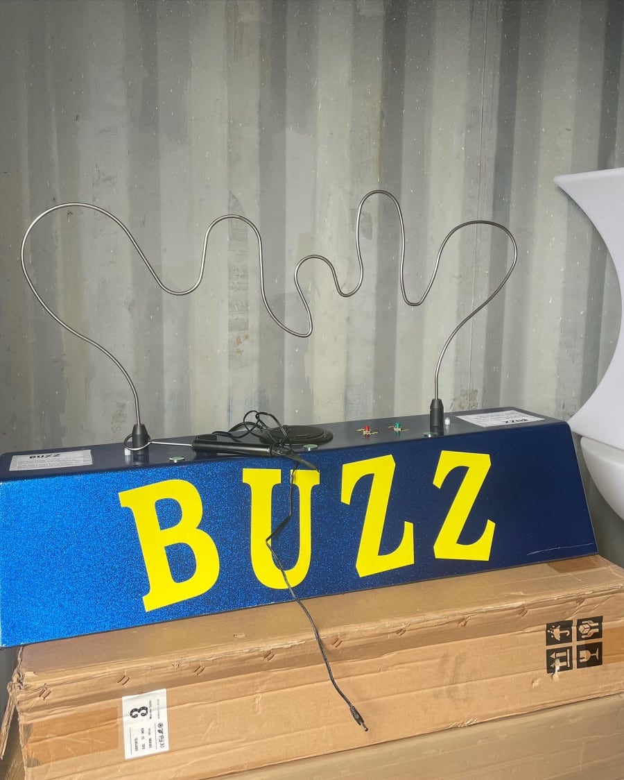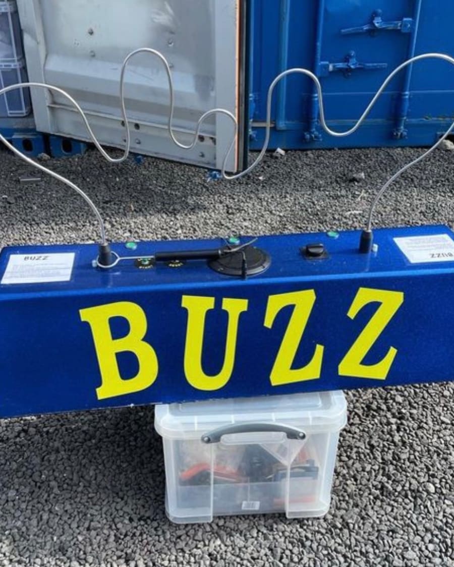 Our giant buzz wire brings quite a buzz to all events. The perfect game to test your coordination skills at speed, bringing out the competitive side in even the most relaxed of people. The aim of the game is to weave your way from one end of the wire without sounding off the unwanted buzz.