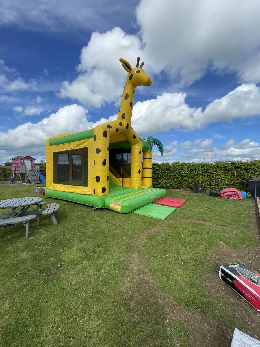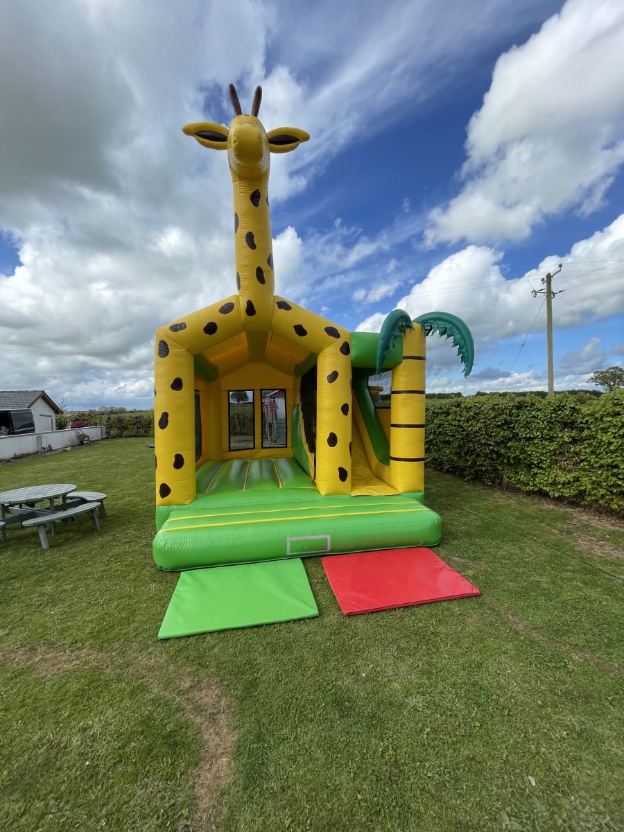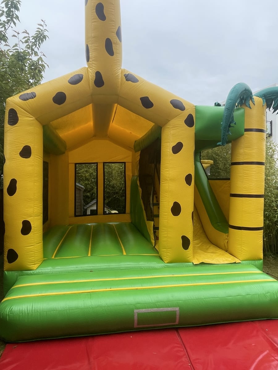 This castle was only introduced to our range of inflatables and instantly became a hit with all children. With impressive artwork and the massive Giraffe inflatable head on the roof, this castle certainly stands out. It comprises of a large bouncy area with biff and bash blow-ups inside, a side slide and a rain cover. This really is a fun inflatable and is guaranteed to provide hours and hours of endless fun.