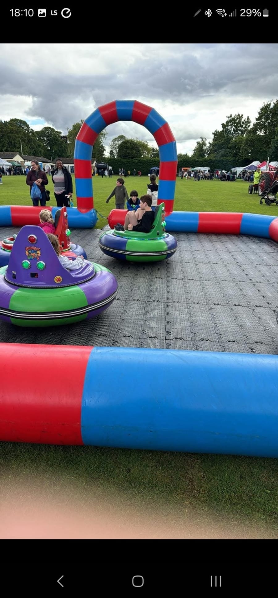 Who Loves Bumper carz? A great alternative to the traditional dodgems. These battery powered units allow the riders to spin and turn in all different directions by using 2 joy sticks. The packages comes with 8 bumper carz and and a large inflatable track. BumperCarz are fast becoming one of the most popular children’s rides in the Ireland & North of Ireland and Inflatable Bumper Cars are now available for hire at your next event. They are extremely safe and provide hours of fun for children 5 and upwards.