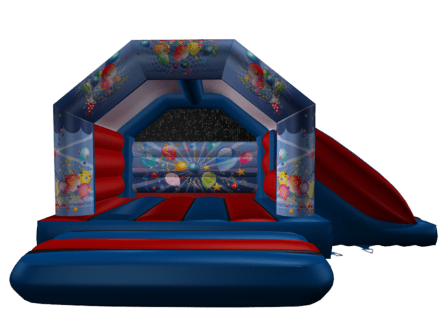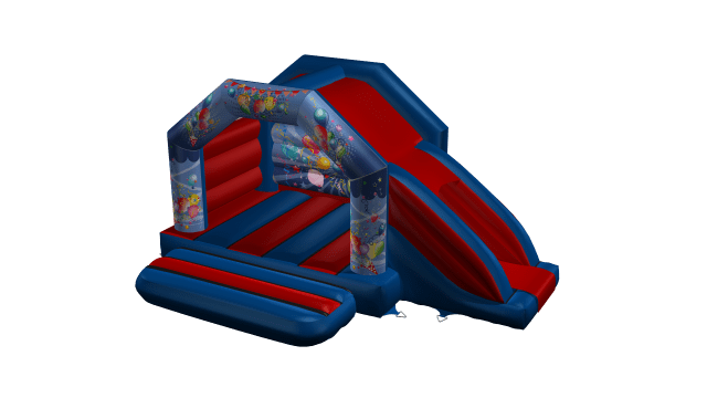 This Slide Combi / Bounce 'n' Slide has the best of both worlds a good sized bouncy castle together with a larger then usual front slide attached, which allows allows this inflatable device to be used in most gardens & also indoor in most halls. It has a built in Rain / Sun cover, so the children can still have lots of enjoyment with no loss! and it is ideal for all types of party's and events!