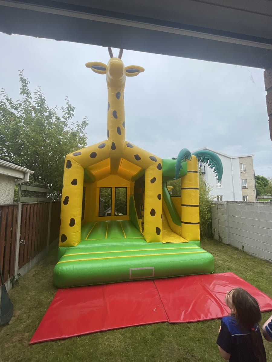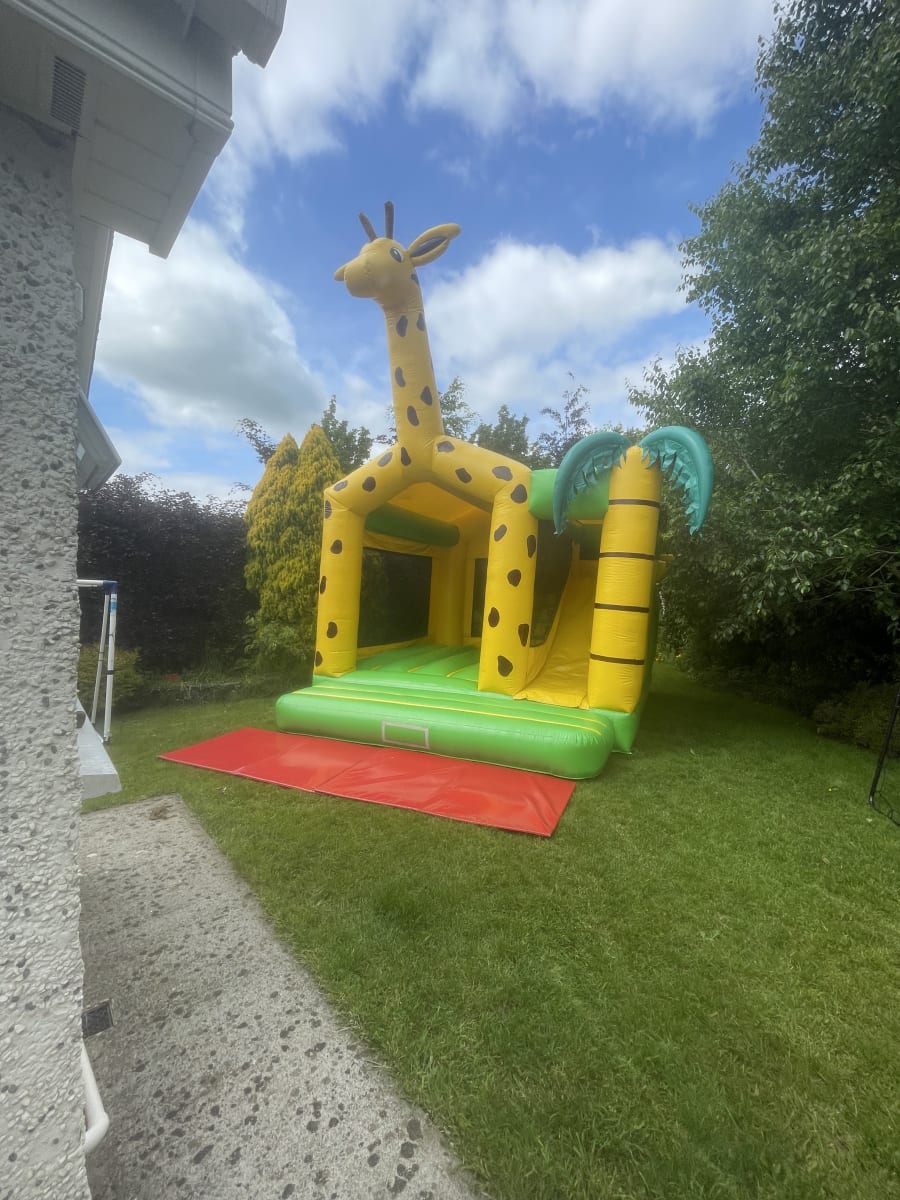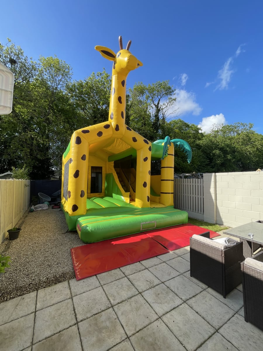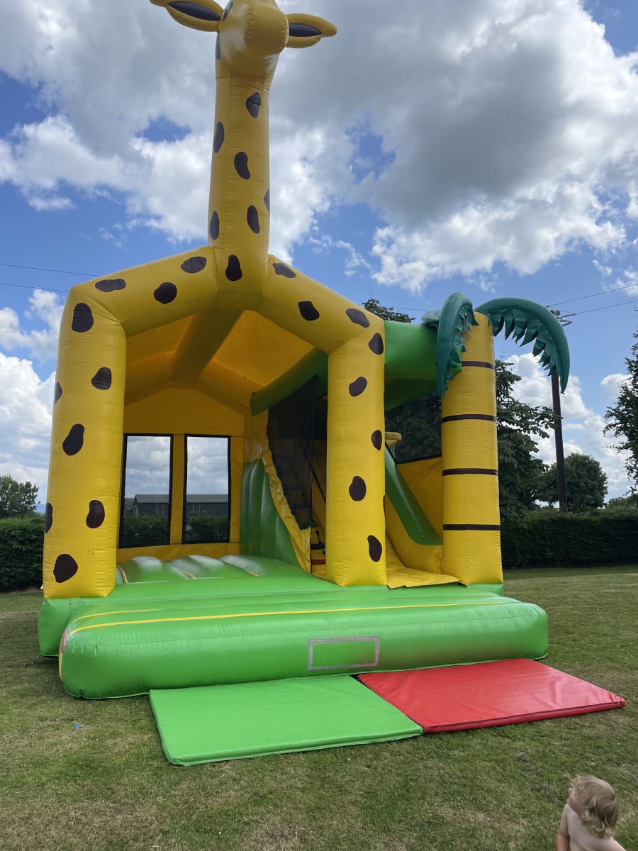 This castle was only introduced to our range of inflatables and instantly became a hit with all children. With impressive artwork and the massive Giraffe inflatable head on the roof, this castle certainly stands out. It comprises of a large bouncy area with biff and bash blow-ups inside, a side slide and a rain cover. This really is a fun inflatable and is guaranteed to provide hours and hours of endless fun.