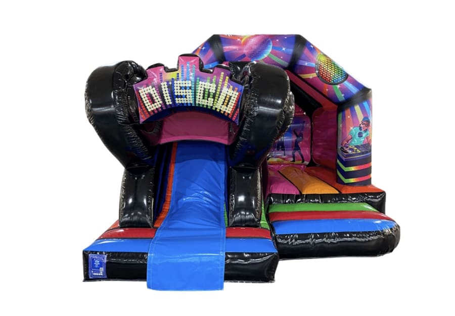 Our inflatable combo unit is designed with a disco theme, complete with a bouncy castle, slide, and colourful graphics that will get your guests in the party mood and is guaranteed to provide hours of fun and entertainment.
