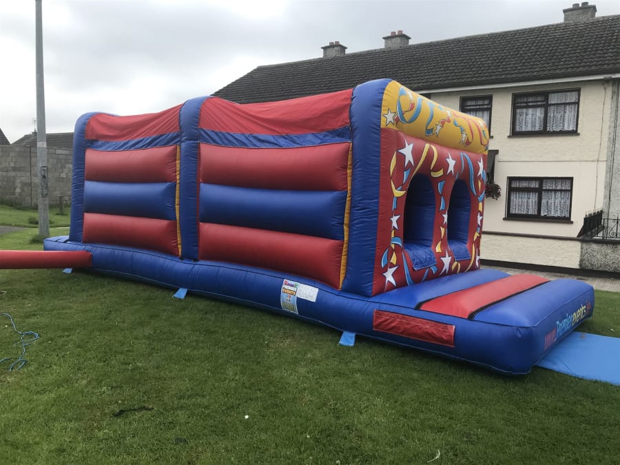 This fully enclosed bouncing obstacle course is a great fun activity with eye catching artwork, Bollards, Pillars , climbing walls and a Slide with an 8ft platform inside this Obstacle course offers hours of entertainment along with high level of safety with its enclosed sides.