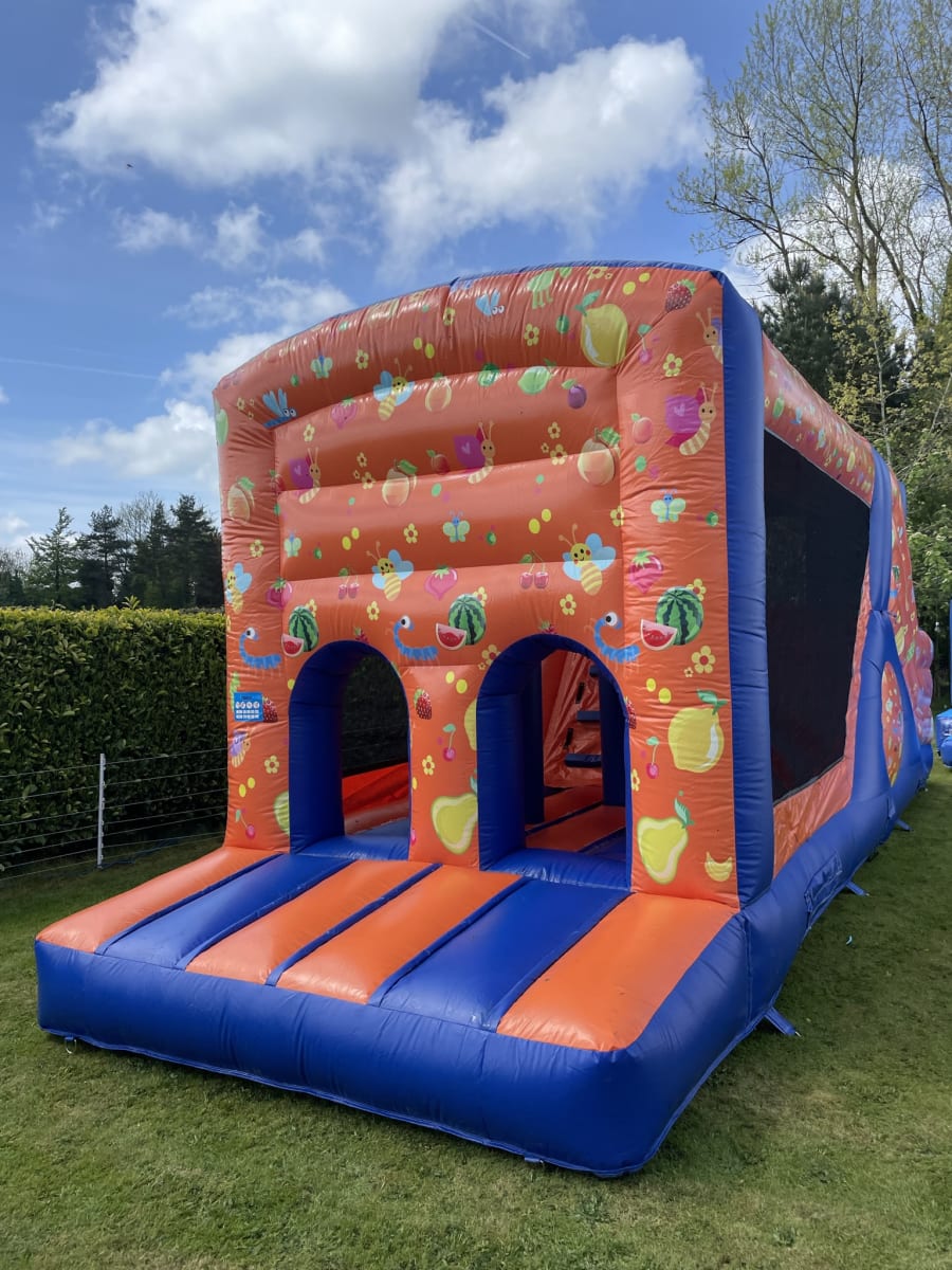 This bouncy castle/slide combo is very popular with boys and girls, vibrant multi coloured, bright, fun looking, will fit most gardens and will certainly keep your little ones happy for many hours,