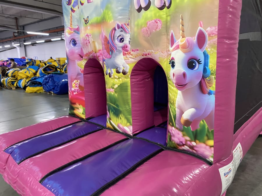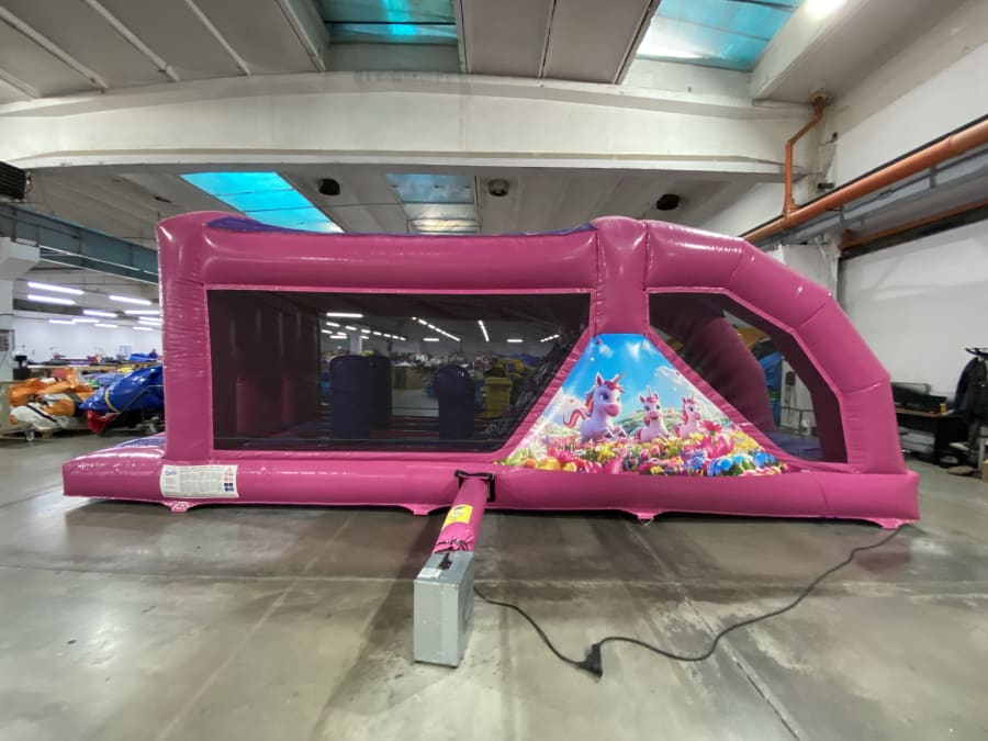 This fully enclosed bouncing obstacle course is a great fun activity with eye catching artwork, Bollards, Pillars , climbing walls and a Slide with an 8ft platform inside this Obstacle course offers hours of entertainment along with high level of safety with its enclosed sides.